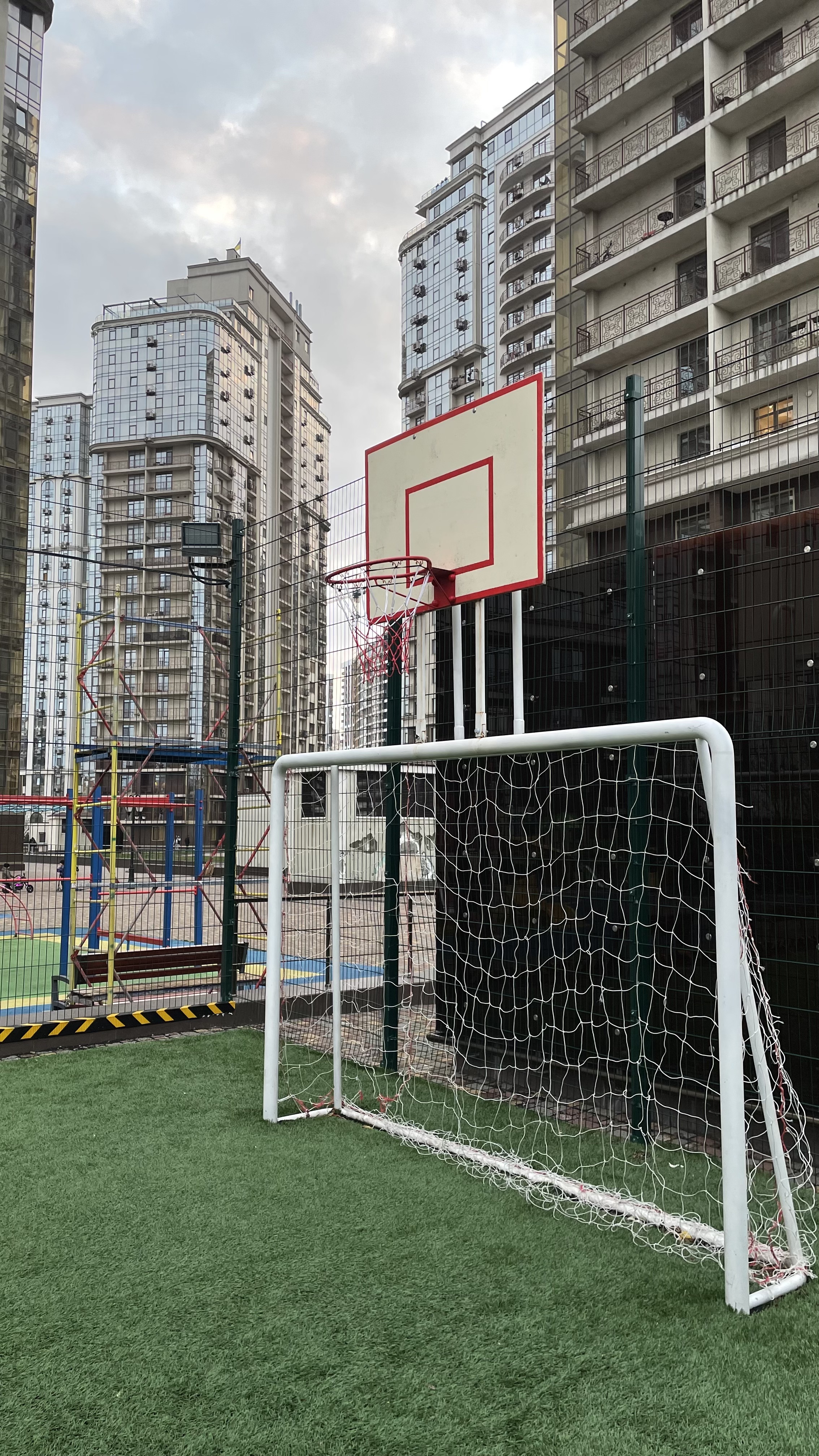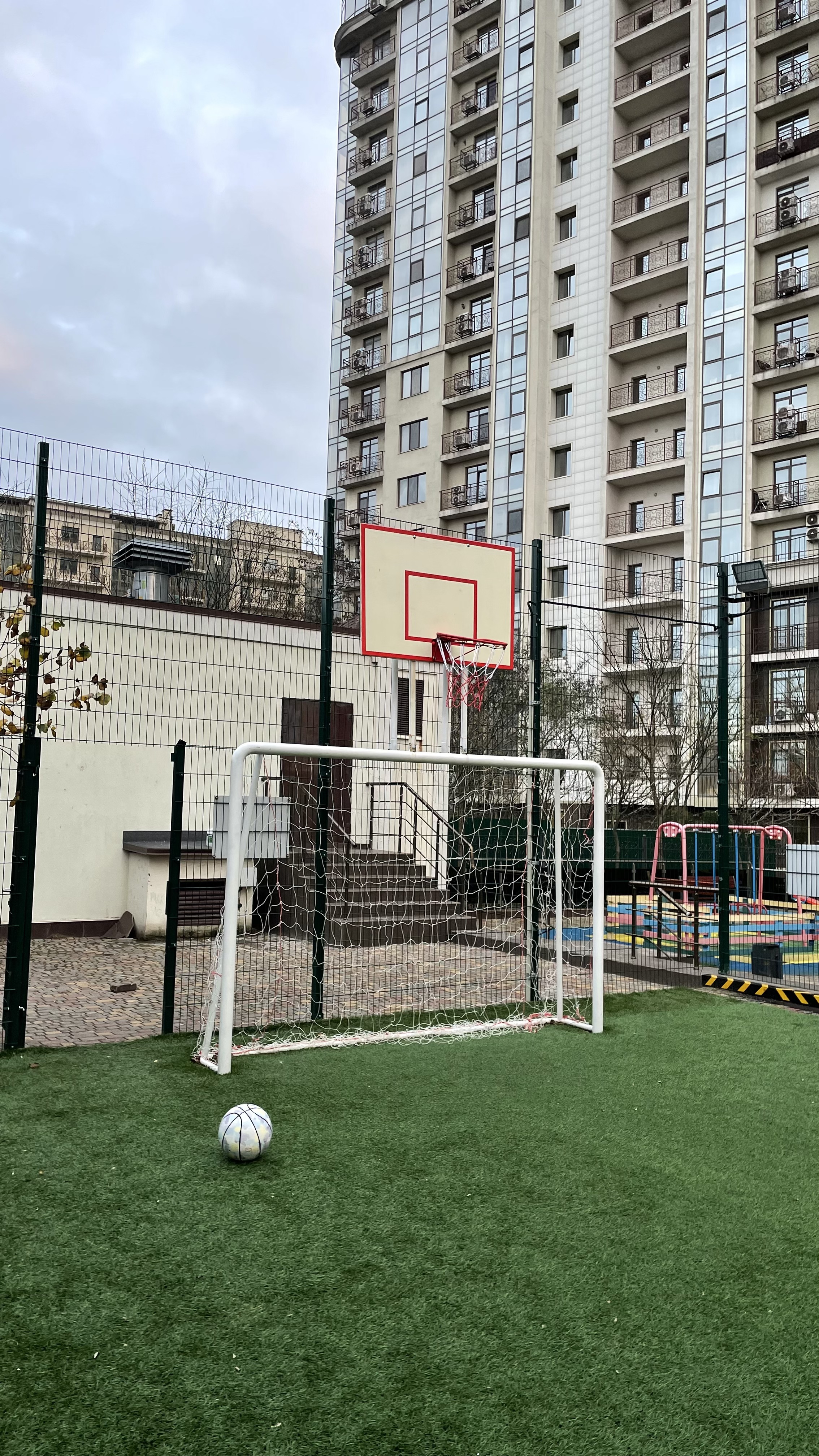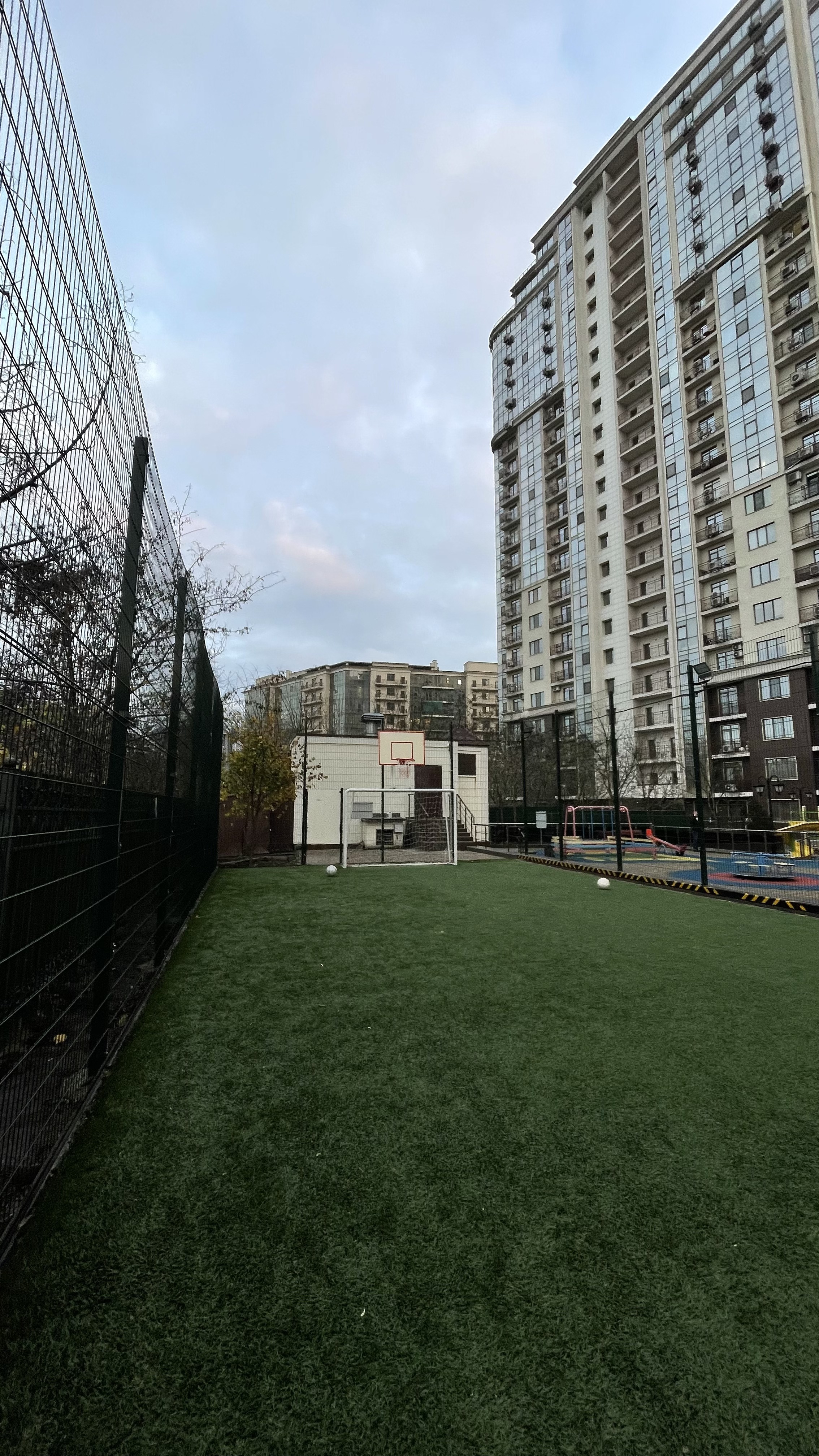 На території комплексу облаштовано повноцінне спортивне поле, призначене для активного відпочинку. Поле оснащене якісним покриттям, встановлено футбольні ворота, а також баскетбольні кільця, що дозволяє використовувати майданчик для різних видів спортивних ігор.