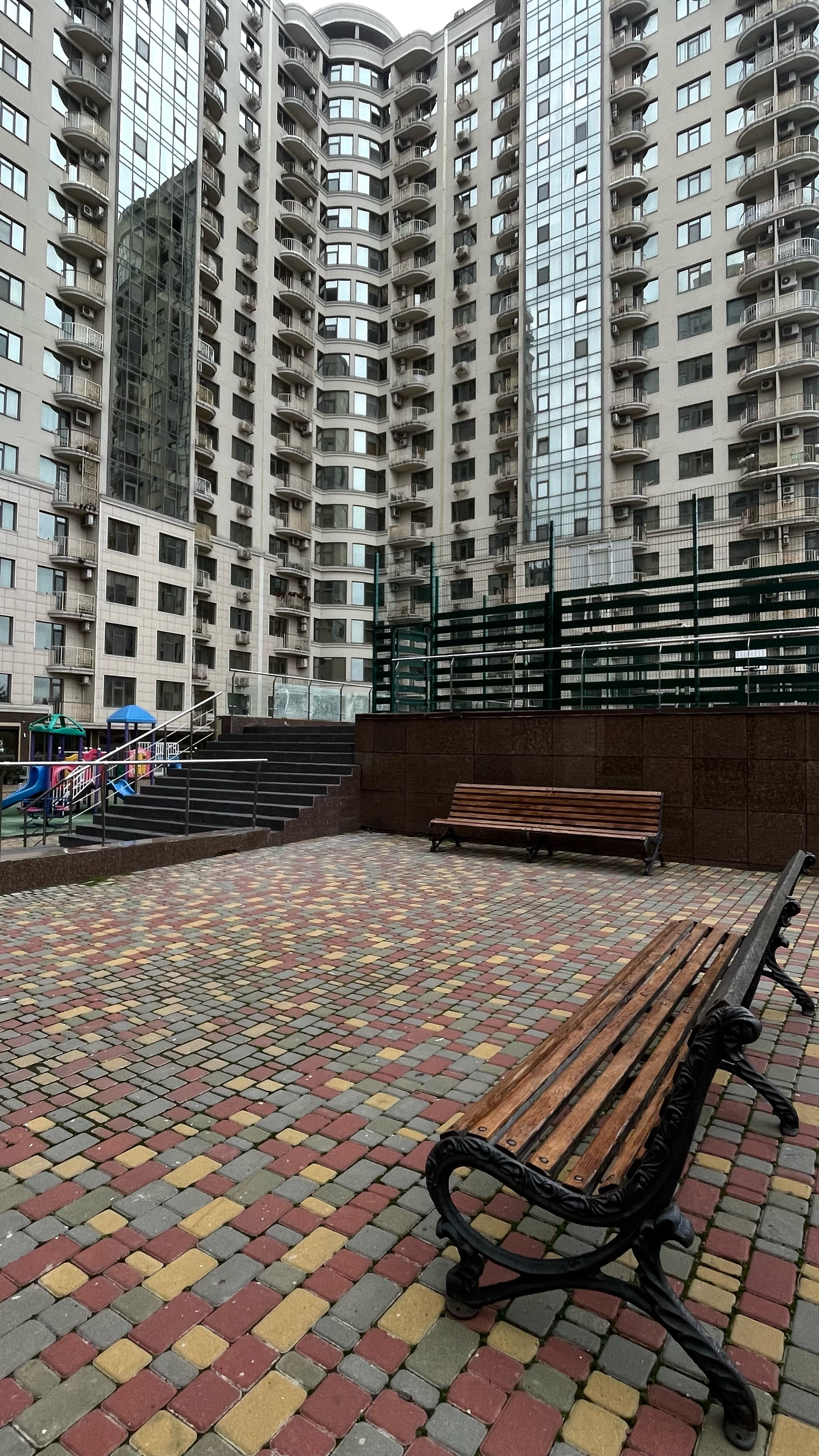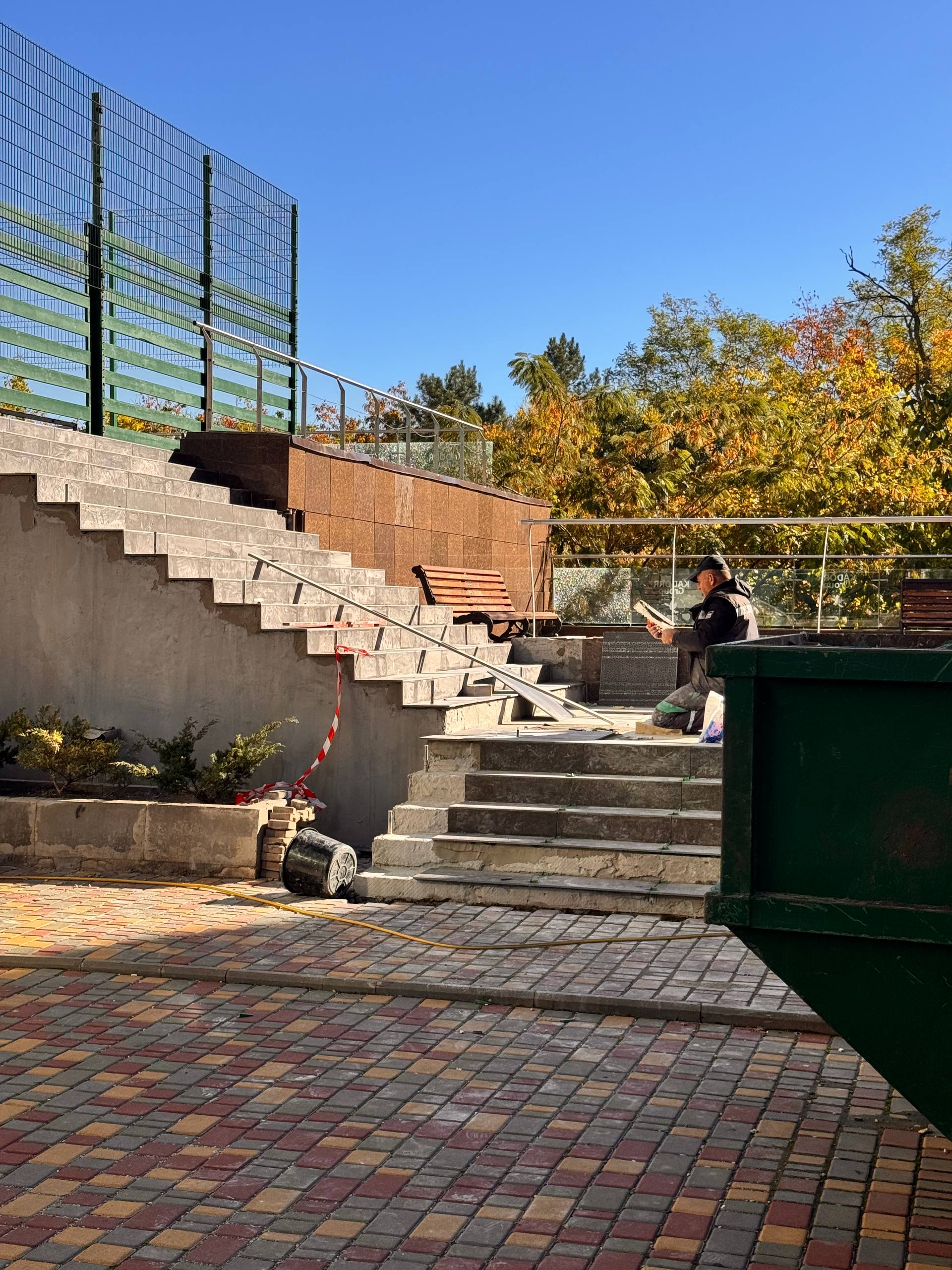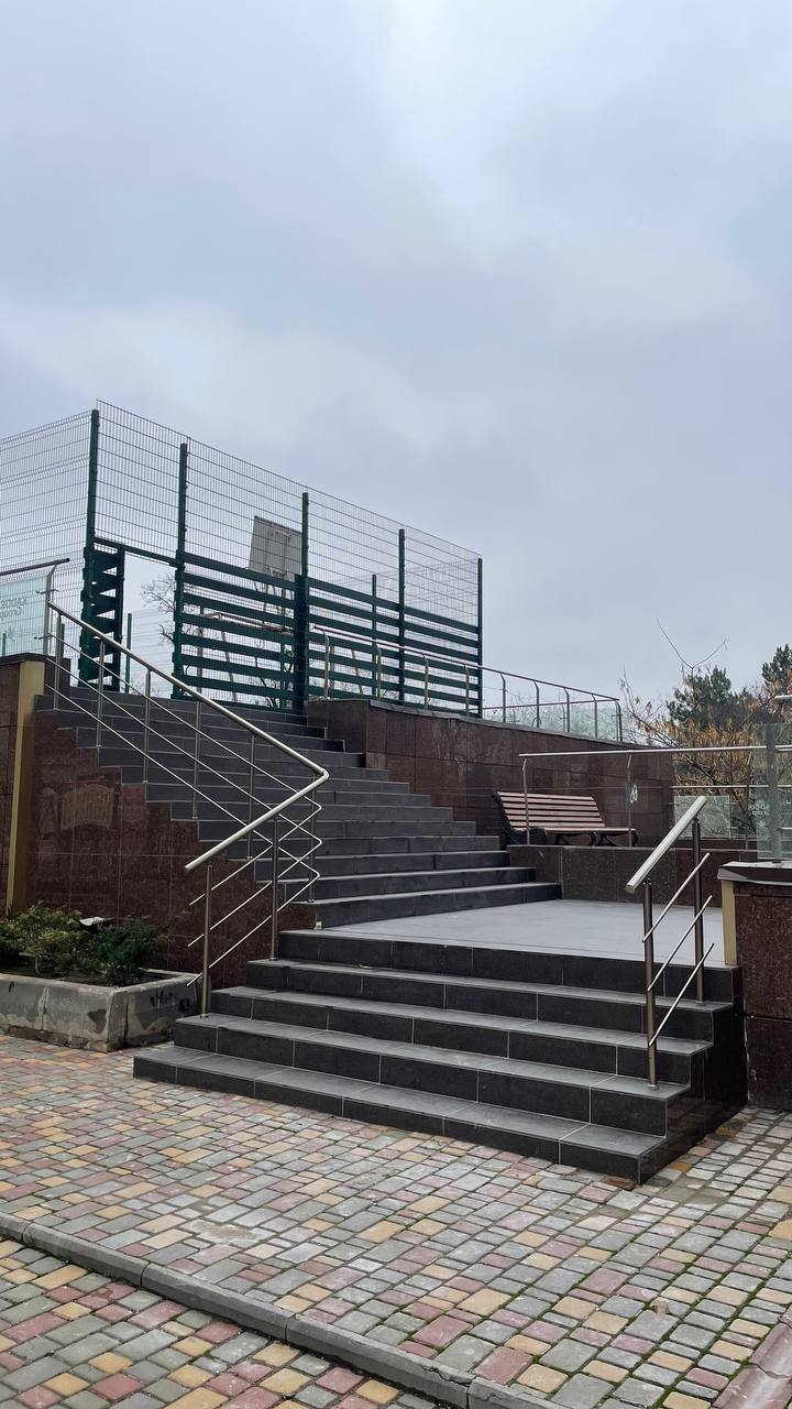 На території комплексу завершено комплексну реконструкцію зовнішніх сходів вхідної групи. Конструкцію було демонтовано, після чого виконано укріплення та формування нової надійної основи. Проведено монтаж перил, укладено нову плитку та здійснено завершальні оздоблювальні роботи. Оновлена вхідна група має охайний і сучасний вигляд.